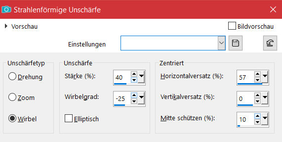 Einstellen–Unschärfe–Strahlenförmige Unschärfe