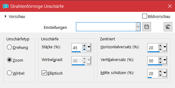 Einstellen–Unschärfe–Strahlenförmige Unschärfe