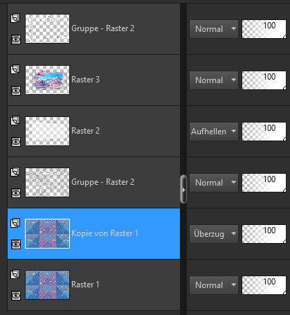 schiebe die obere Gruppe – Raster 2 an oberste Stelle