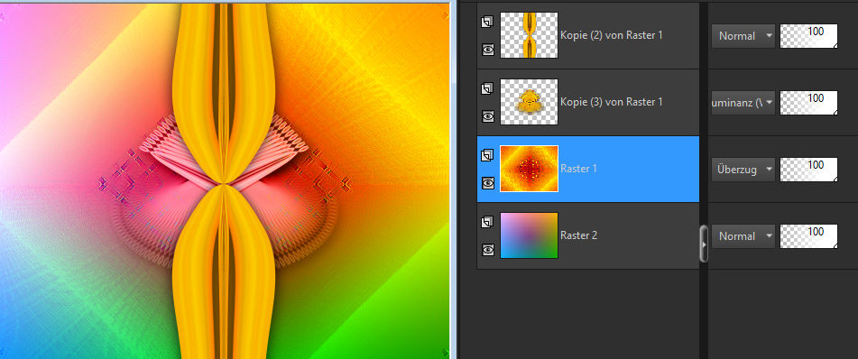 Ebene verkleinern auf 70%–Mischmodus Luminanz (V)