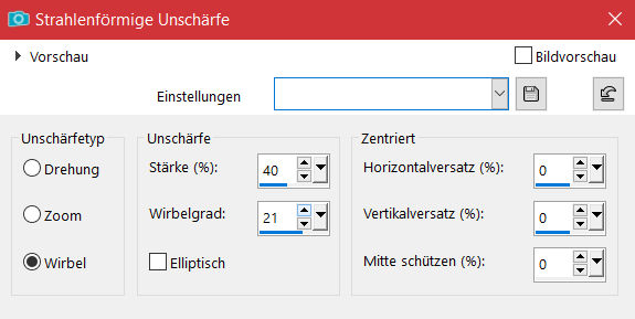 Einstellen–Unschärfe–Strahlenförmige Unschärfe